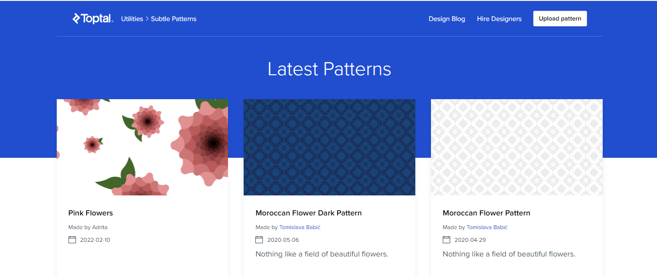 An easy to browse site with categories and search, Latest Patterns a large collection of high quality images you can use royalty free on any web projects and Background.